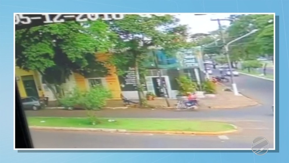 Dupla em moto se aproxima de tatuador, em Ponta Porã, MS (Foto: Reprodução/TV Morena)