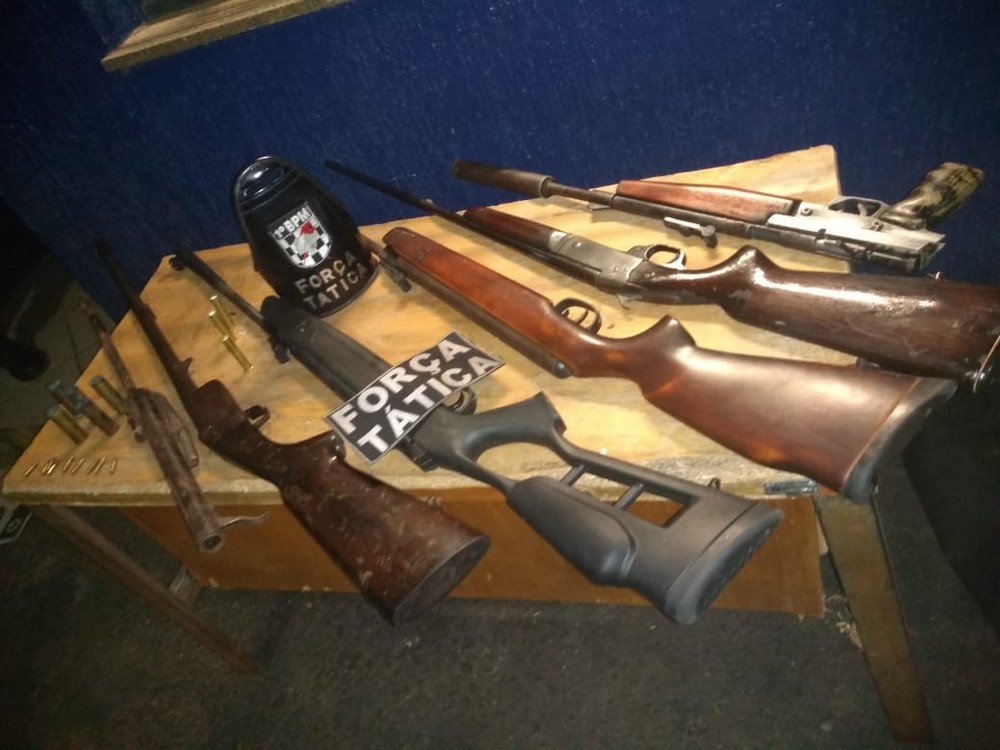 Armas apreendidas pela PM após anúncio na web (Foto: PM/Divulgação)