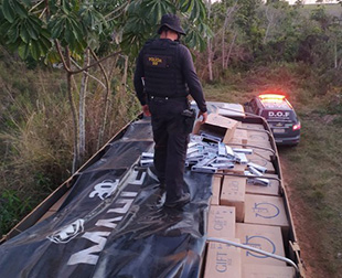 Os militares visualizaram o caminhão, com placas de Curitiba (PR), abandonado em uma estrada vicinal próximo a uma mata. Durante a vistoria localizou-se a carga de cigarros de origem estrangeira.