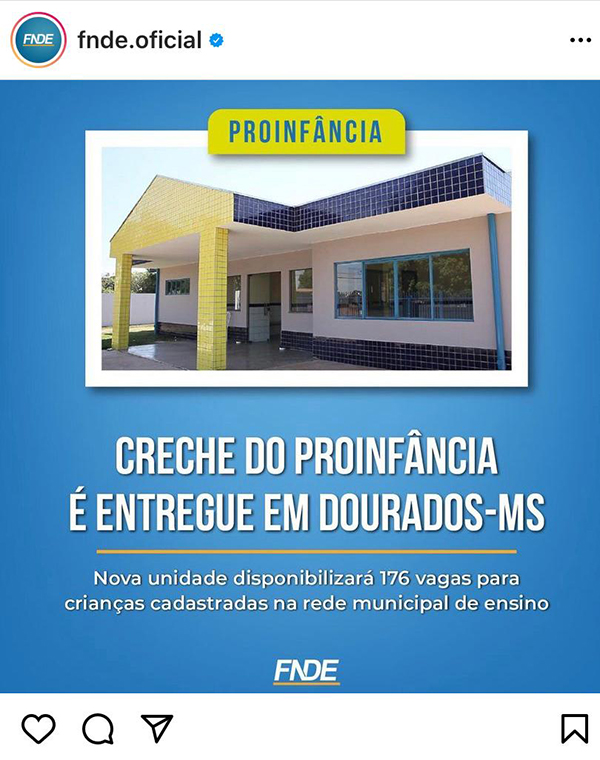 A obra foi destaque na página e no Instagram do FNDE (Foto: reprodução/Instagram)