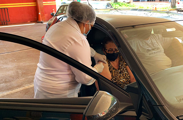Nos últimos dois domingos, a SEMS (Secretaria Municipal de Saúde de Dourados) em parceria com o Governo do Estado de Mato Grosso do Sul, via Corpo de Bombeiros, conseguiu imunizar 290 idosos com 77 anos ou mais no drive thru instalado no quartel da corporação, localizado na avenida Presidente Vargas, número 1.167, na Vila Progresso.