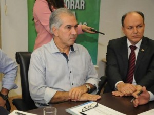 Governador Reinaldo Azambuja (PSDB) ao lado do deputado Junior Mochi (Foto: Paulo Francis)