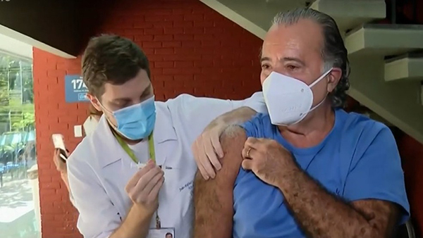 Tony Ramos é vacinado no Rio — Foto: Reprodução/GloboNews