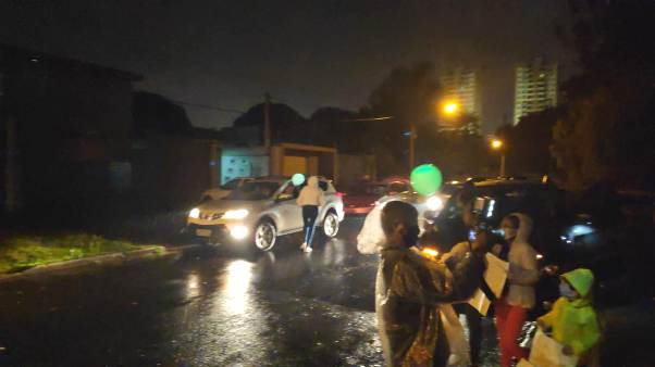 Familiares e amigos dos aniversariantes encontraram no drive thru uma maneira de comemorar (Foto - Divulgação)