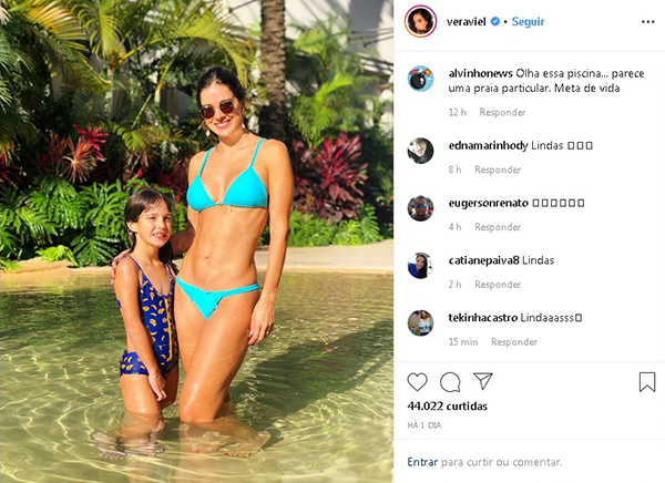 “Vera Viel cada dia mais bonita, olha esse corpo impecável!”, disse uma admiradora da artista. “Eita, que mulher! Que corpo”, derreteu-se outro fã.