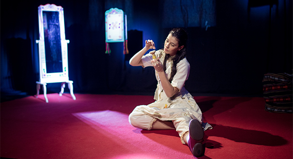 Angela Montealvão é a atriz que interpreta a costureira, protagonista da história, que busca através de seu ofício formar a própria identidade. Suas falas são suaves, e seu sorriso delicado encanta as crianças, que com olhos brilhantes ficam atentas a cada movimento. A luz acompanha a dramaticidade da cena, e a interação com o público é o ápice da apresentação. Os acordes de violão tocados com leveza pelo ator Leonardo de Castro também chamam a atenção. Impossível não sair dessa plateia se sentindo mais leve e impressionado.