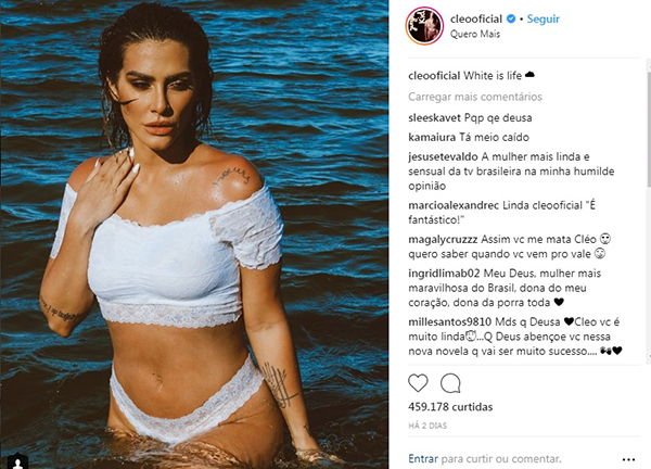 Na legenda, a atriz, que agora também é cantora, escreveu: “White is life! (Branco é vida, em português)”. Nos comentários, os fãs de Cleo fizeram vários elogios, como “Maravilhosa”, “Diva”, “Linda”, entre outros.
