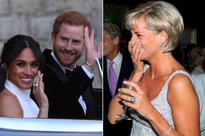 O detalhe foi percebido pela imprensa inglesa quando Meghan acenou ao lado de Harry, a bordo do Jaguar, a caminho de Frogmore. A princesa Diana foi flagrada com o mesmo anel em duas ocasiões: durante uma visita à Sidney, na Austrália, em 1996 e em um leilão em 1997.Um porta-voz do palácio de Kensigton confirmou à Vogue que o anel no dedo de Megan é de fato aquele que pertencia à Diana