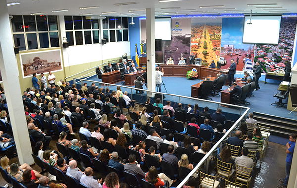 A sessão solene de entrega de honrarias acontece anualmente na Câmara de Dourados (Foto: Thiago Morais)