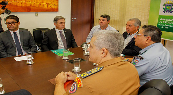 O governador Reinaldo Azambuja e o secretário de Estado de Justiça e Segurança Pública, Antonio Carlos Videira, apresentaram nesta terça-feira (8.01), durante encontro realizado na Governadoria, algumas mudanças que serão feitas na Secretaria.