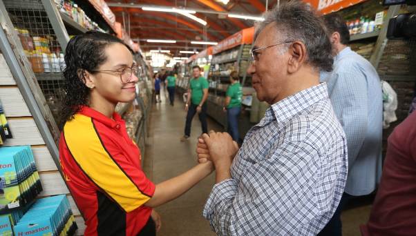Odilon interrompeu a visita ao Mercadão Municipal para atender a Rádio (Foto - Assessoria)