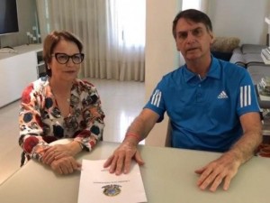 A deputada federal reeleita Tereza Cristina (DEM-MS) visita nesta quarta-feira (dia 10) o candidato a presidente do PSL, Jair Bolsonaro, no Rio de Janeiro (RJ).