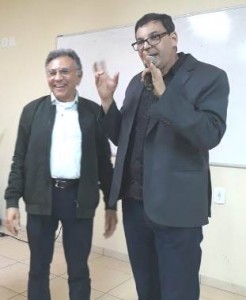 Bispo Marcos Vitor durante reunião política ao lado do candidato Odilon Oliveira (Foto - Arquivo/Estado Notícias)