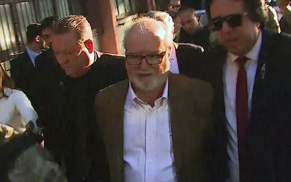 Eduardo Azeredo chegou à 1ª Delegacia de Polícia Civil Sul, no bairro Santo Antônio, Região Centro-Sul de Belo Horizonte, acompanhado de um dos filhos e de um dos advogados. Eles entraram na delegacia em um carro seguido de uma viatura da Polícia Civil.