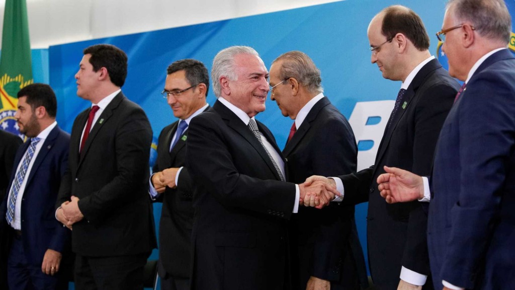 O emedebista também substituiu todos os ministros da então presidente afastada Dilma Rousseff (PT) e recebeu uma série de críticas por escolher apenas homens brancos para os cargos.(Foto: Alan Santos/PR)