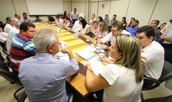 Vereadores e secretarias durante reunião desta quarta-feira (Foto: Thiago Morais)