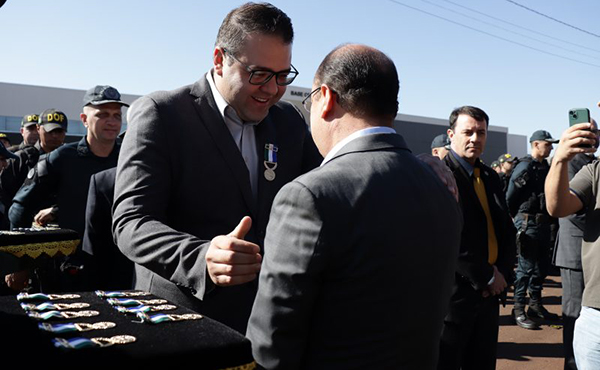 O Prefeito de Dourados, Alan Guedes, foi condecorado na manhã desta terça-feira (4/7) com a medalha “Águia da Fronteira”, do DOF (Departamento de Operações de Fronteira), em reconhecimento ao apoio que tem prestado à unidade.