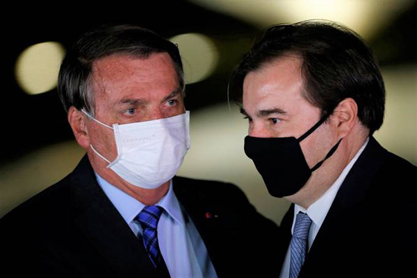 Presidente da Câmara dos Deputados, Rodrigo Maia, ao lado do presidente Jair Bolsonaro em Brasília (Foto - Adriano Machado/Reuters)