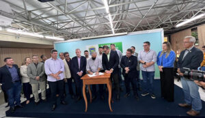 A vereadora Liandra da Saúde (PTB) esteve em Campo Grande, na manhã desta quinta-feira (31), acompanhando a assinatura do termo de compromisso do Governo do Estado, relativo ao aumento de repasse financeiro no valor de R$ 60 milhões, que serão destinados em investimento em obras e custeio na assistência médico-hospitalar e alta complexidade da saúde de Dourados.
