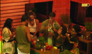 Após ver que os colegas sentiram falta da bebida, Milena assumiu a responsabilidade por seus atos. “Será que vão mandar mais bebida para jogar fora? Não é desperdício, né? Não é fome. Bebida deixa as pessoas desidratadas”, comentou ela. Gabi, incomodada, preferiu ignorá-la. “Jonas, depois faz um drink de ice para mim. Adoro ice.” Mesmo sem resposta, Milena deu seguimento à conversa: “Até eu vou tomar ice hoje.”