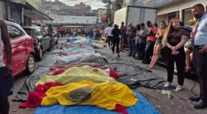 Moradores do Complexo da Penha, na Zona Norte do Rio de Janeiro, levaram pelo menos 55 corpos para a Praça São Lucas, na Estrada José Rucas, uma das principais da região, ao longo da madrugada desta quarta-feira (29), o dia seguinte à operação mais letal da história do RJ.