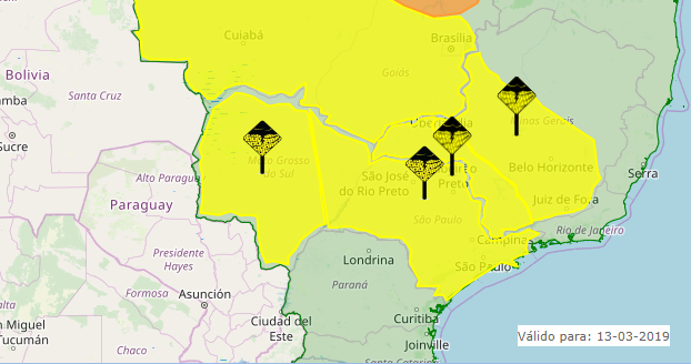 O alerta foi elaborado com base em dados do Instituto Nacional de Meteorologia (Inmet).