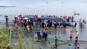 Desde o inicio da manhã, quando a baleia foi encontrada, diversos moradores estiveram no local para jogar água nela. Durante a ajuda, um homem foi atingido após a baleia fazer um movimento brusco e ficou ferido. Há suspeita de que ele tenha fraturado uma perna.