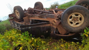 Duas pessoas ficaram feridas após uma caminhonete F1000 capotar, na manhã desta sexta-feira (10), na BR-060, em Paraíso das Águas,