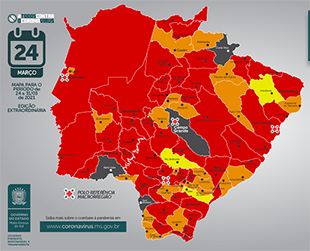 O mapa situacional do Prosseguir apresentado nesta quarta-feira (31) mostra redução de quatro para uma o número de cidades classificadas na bandeira cinza. No novo mapa apenas Sidrolândia saiu do grau alto para o extremo, quando é recomendado apenas o funcionamento de atividades essenciais.