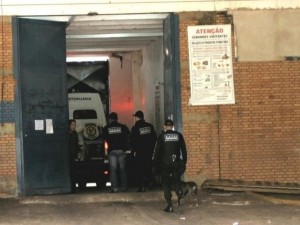 Policiais civis no Presídio de Segurança Máxima onde presos são alvos da operação (Foto: Saul Schramm)