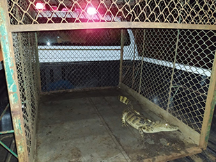 A Polícia Militar Ambiental de Aquidauana apreendeu, na madrugada deste domingo (11), um jacaré que estava “passeando” pelas ruas da cidade. O animal foi o terceiro da espécie capturado transitando pela cidade neste ano.
