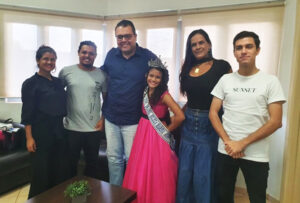 O Prefeito Alan Guedes recebeu nesta quarta-feira (20) a Miss Dourados Infantil 2020, Stephany Ruiz. A menina de 11 anos, também já conquistou o título de Miss Infantil MS 2021 (etapa estadual) e Miss Brasil Beleza Marina 2022 (etapa nacional), que aconteceu em Curitiba. Ela vai representar o Brasil na competição internacional, que acontece em Punta Cana, na República Dominicana, em outubro deste ano.