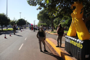 A ação faz parte da campanha Maio Amarelo, o movimento nasceu com uma só proposta: chamar a atenção da sociedade para o alto índice de mortes e feridos no trânsito. A Blitz de hoje começou com sirenes e giroflex das viaturas ligadas enquanto os participantes faziam 1 minuto de oração pelas vítimas de acidentes, também soltaram fumaça branca em alusão a paz desejada no trânsito.