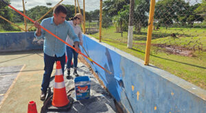 s trabalhos haviam sido iniciados em novembro, com a pintura do piso das quadras, mas precisaram ser interrompidos devido ao período de chuvas intensas. Com a melhora das condições climáticas, as equipes retomaram os serviços, concentrando agora a intervenção nas paredes e nos acabamentos finais do espaço esportivo.
